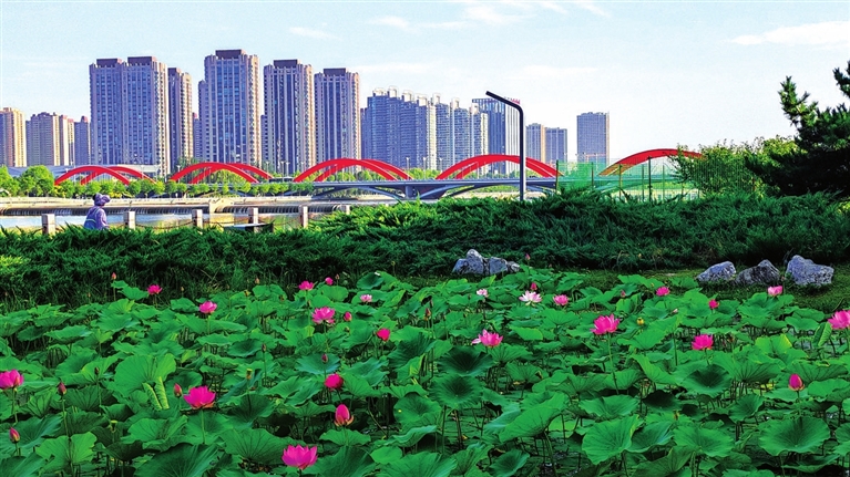 清晨,漫步在汾河岸边,绿植养眼,灰鹭嬉戏,荷叶田田,荷花飘香,好一派并州夏日风光。