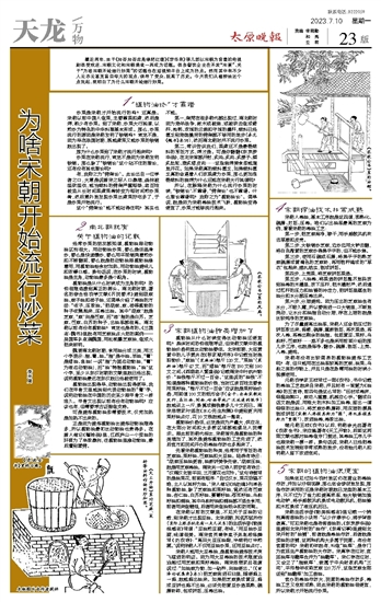 官办的榨油作坊大,民营的榨油作坊多,榨油工艺又空前成熟,因此宋朝的植物油很便宜,所以宋朝才开始流行炒菜。
