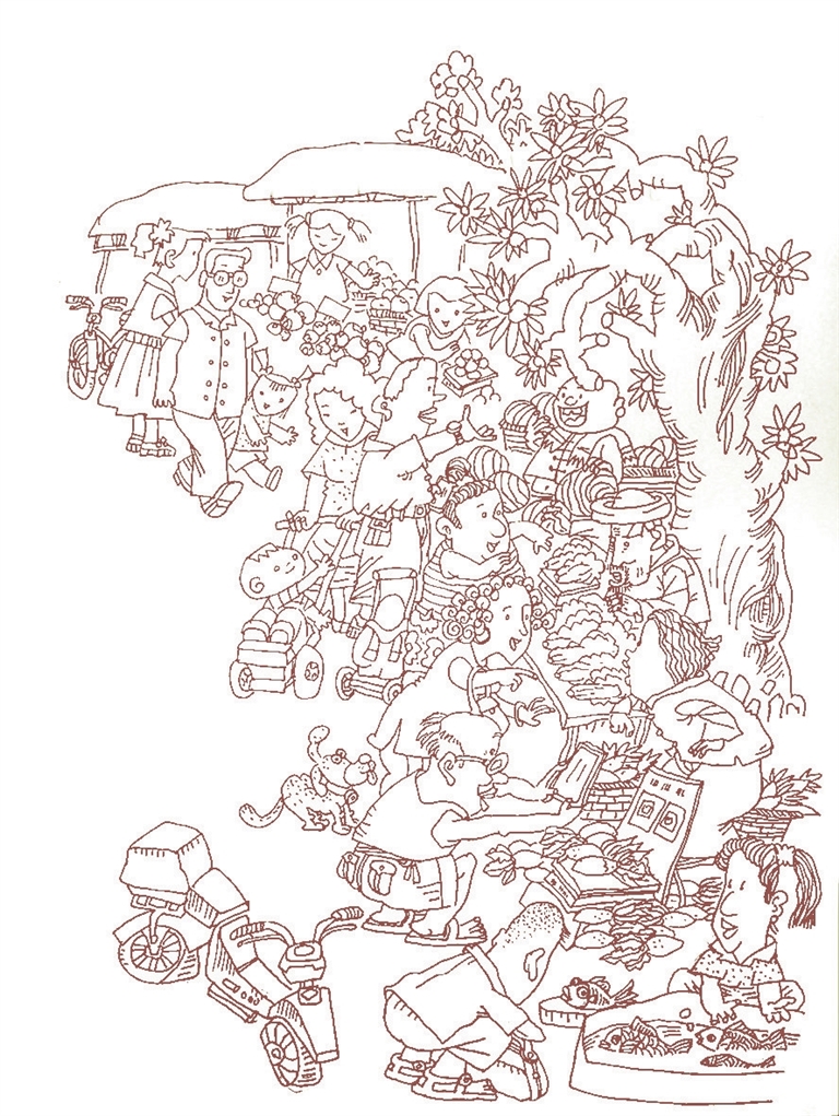夏日的早市,瓜菜果蔬总是独占鳌头。这些来自农家小院的绿色产品有的伸肢展臂地堆叠在一起,有的用马尾草、细绳,或者布条捆绑着放在一处,形状不一、大小各异,却各有各的明媚、各显各的神采,给马路两侧点染成一幅流动的图画。韭菜割口的绿汁含着晶莹的渴望;生菜叶上滚动的露水映着美好的梦想;黄瓜身上的鲜刺透着良善的锋芒;马铃薯上的泥土带着质朴的气息。它们素面朝天的样子很容易让人想到与淳朴、自然、实在相关的词汇。世间万物往往如此,未经雕琢和打磨的东西才葆有形态的本色、味道的本真,也更容易触碰到人心底的柔软。