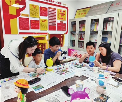 下午3时30分,孩子们准时来到社区的活动室。工作人员为孩子们提供活动所需的存钱罐、颜料、彩绘笔等材料,并介绍了制作技巧及注意事项。鼓励孩子们充分发挥想象力,自己动手设计有创意的图案。孩子们有说有笑,互相配合,现场气氛热烈。一个小时后,一个个画有精美图案的小钱罐在孩子们的巧手中新鲜“出炉”了。在展示分享环节中,孩子们开心地向大家介绍各自的作品和设计理念,一个个奇思妙想赢得了大家阵阵掌声。