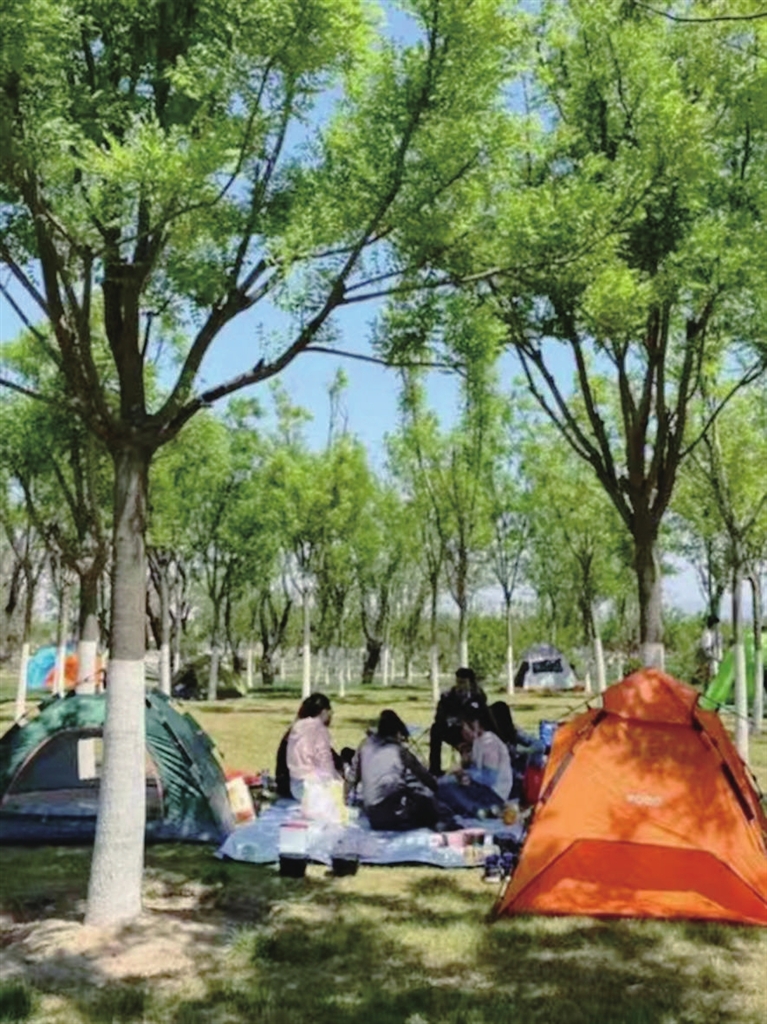 越来越多的游客在滨水餐厅、园艺小镇周边露营纳凉,休憩娱乐。