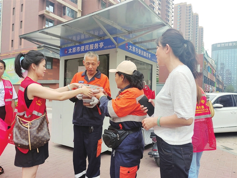 “歇一歇,请喝口绿豆汤。”7月12日,南寒街办的西华苑东社区组织开展“夏季送清凉”活动,社区工作人员及志愿者将熬好的绿豆汤打包装入小碗,为环卫工人、快递小哥、外卖骑手等户外劳动者送去夏日清凉和暖心问候。 李涛 张娅洁 摄