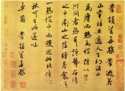 他在《逃暑帖》中写道:“芾逃暑山,幸兹安适……”大意是,米芾因逃避暑热跑到山上去,尽情享用“南山之阴”。