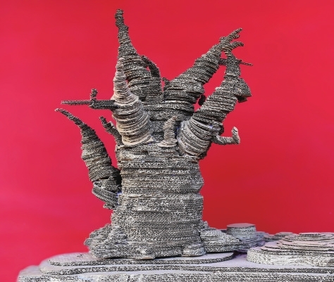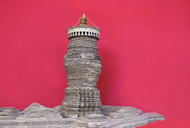 王帅栋创作的瓦楞纸作品,小到一棵树、一座塔,大到云冈石窟、晋商大院,每一件作品都细节满满,每一处接驳点都精致缜密,令人叹为观止。