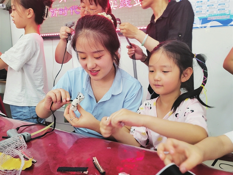 为丰富辖区儿童暑假生活,培养其动手能力和实践能力,7月13日,青年路三社区组织辖区儿童开展“精彩世界 手工发饰DIY”活动。活动现场,志愿者老师详细讲解“发饰”制作方法,传授制作技巧。在老师的指导下,孩子们制作出一个个精美“发饰”。她们将制作的“发饰”戴在头上,成就感满满,稚嫩的脸上露出开心的笑容。