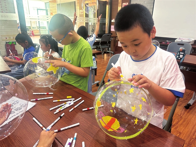 7月13日下午,柳巷街道起凤街社区党委联合驻地单位举办绘制彩虹波波球活动。孩子们展开奇思妙想,拿起手中的画笔和丙烯颜料,在波波球上涂抹着自己喜欢的元素和色彩,让一个个透明的气球变得色彩斑斓,充满童趣,激发了孩子们的想象力和创造力。 侯慧琴 苏静 摄