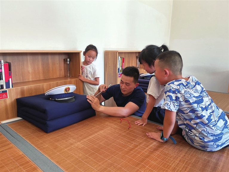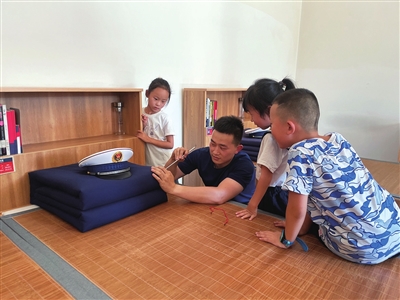 其间,孩子们来到宿舍区,跟着消防员叔叔学习叠豆腐块被子的小技巧。当天最受欢迎的当属“变身消防员”项目,在消防员的指导下,孩子们身穿消防服、头戴消防头盔,摇身一变成了一名消防员,实实在在过了一把“消防瘾”。