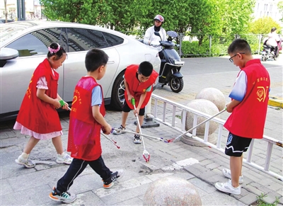 7月15日上午,南内环街二社区组织辖区放假在家的一些小学生,在社区内展开义务劳动,清理小区院落垃圾死角和绿化带果皮纸屑,通过让孩子们积极参与创城行动,从小培养服务社会、热爱劳动、爱护环境的意识。当天活动中,孩子们表现积极,辖区环境焕然一新。