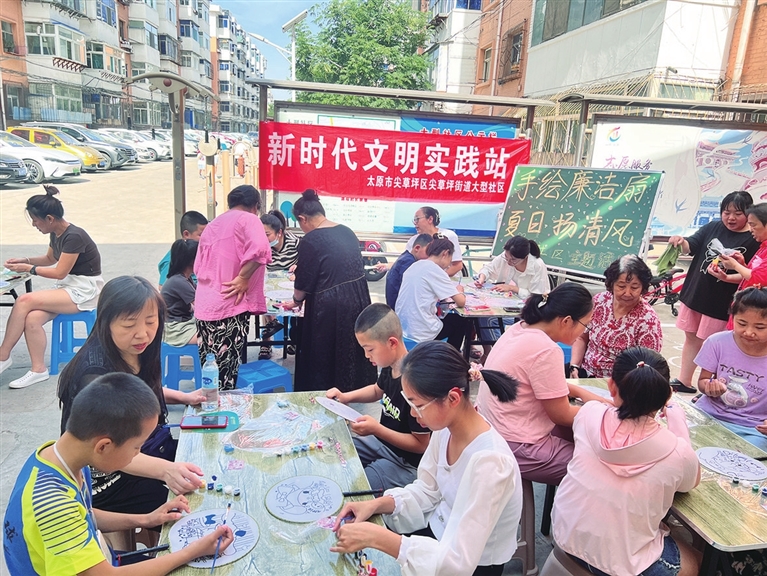 7月16日上午,尖草坪街道大型社区开展“手绘廉洁扇,清风扬夏日”主题活动。活动现场,居民纷纷拿起手中的画笔开始创作,将自己对清风廉洁的领悟一笔一画绘制在扇子上。居民表示,该活动寓教于乐,很有意义。 韩睿 李佳茵 摄