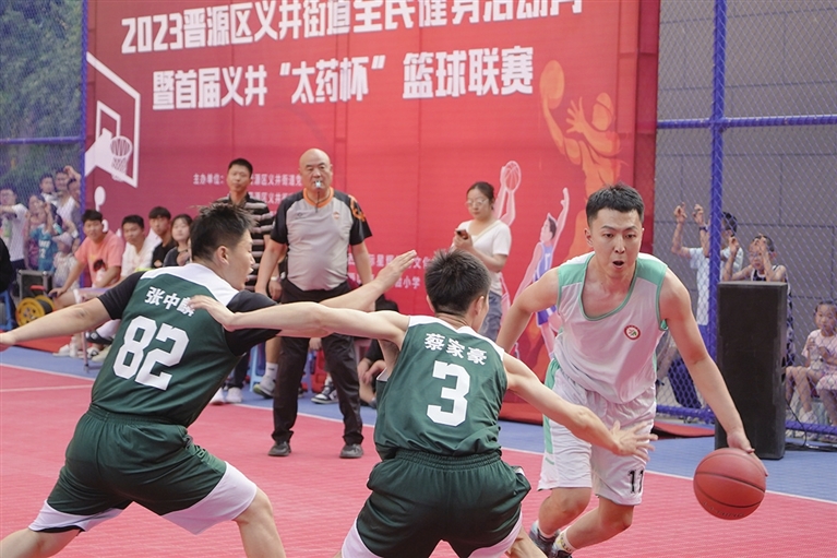 义井街道相关负责人介绍,夏日到来,为了进一步丰富群众体育文化生活,借助体育赋能优势,鼓励辖区居民发扬奋勇拼搏、超越自我的精神,积极参与健身,追求健康生活,营造“全民健身、全民运动”的良好氛围,特意举办了此次联赛。参加比赛的共有16支队伍,来自该街道各社区和企业。首场比赛于7月17日在梧桐院小区成功举行,还采用直播方式,让更多未能抵达现场的居民感受比赛的火热氛围,线上线下观众积极互动,通过屏幕为运动员加油助威。