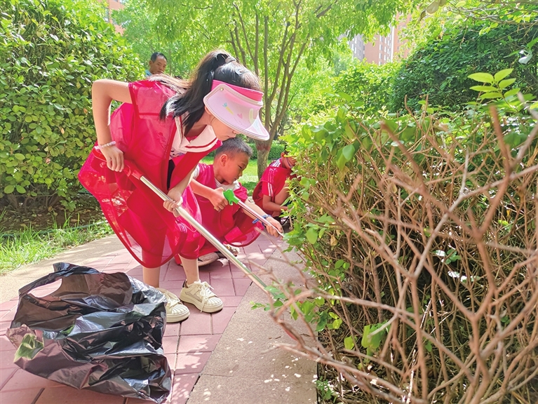 随着人们环保意识的增强,小区的环境干净了不少,但在绿化带等隐蔽的角落里,仍能见到被人丢弃的垃圾。为让孩子们从小养成良好的环保习惯,7月19日,蓝山社区开展志愿服务活动,组织小学生动手扮靓家园。小志愿者们身穿红马甲、手握夹子、提着垃圾袋,“地毯式”清理绿化带内的纸屑、烟头等散碎垃圾。7岁的小学生李颜汐说:“能为保护环境出份力,我感觉很快乐。”