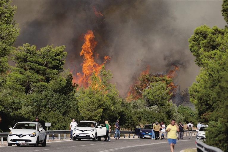 由于连日遭遇极端高温,希腊首都雅典郊外17日发生两起野火,导致数以千计人员疏散。