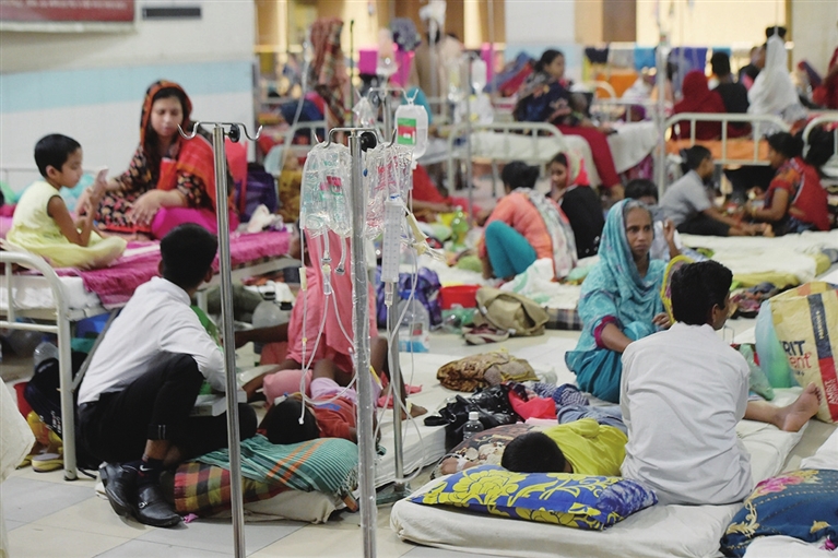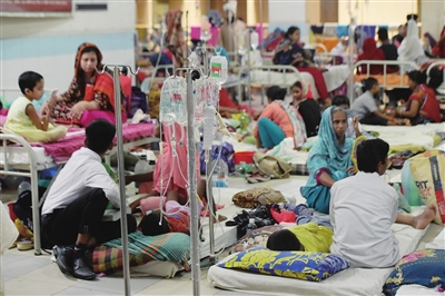 7月19日,在孟加拉国达卡,登革热患者在医院接受治疗。孟加拉国卫生部门18日称,该国当日新增病例1533例,死亡13例。