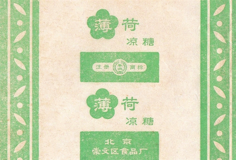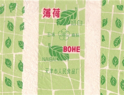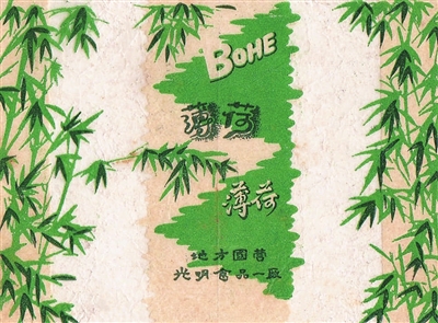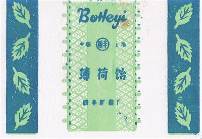 薄荷糖的糖纸以绿色为主,一般都是绘画些薄荷叶,在伏天给人以清凉和宁静的感觉。令人印象最深的是上世纪50年代上海光明食品一厂出品的薄荷糖纸,没有直接表现薄荷叶,而是绘画出几株青绿的翠竹,让人想象到清风吹过时竹林轻轻摇曳发出有节奏的鸣响,体会唐代诗人李白《下终南山过斛斯山人宿置酒》中“绿竹入幽径,青萝拂行衣”的意境,别有一番清凉的感受。