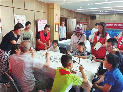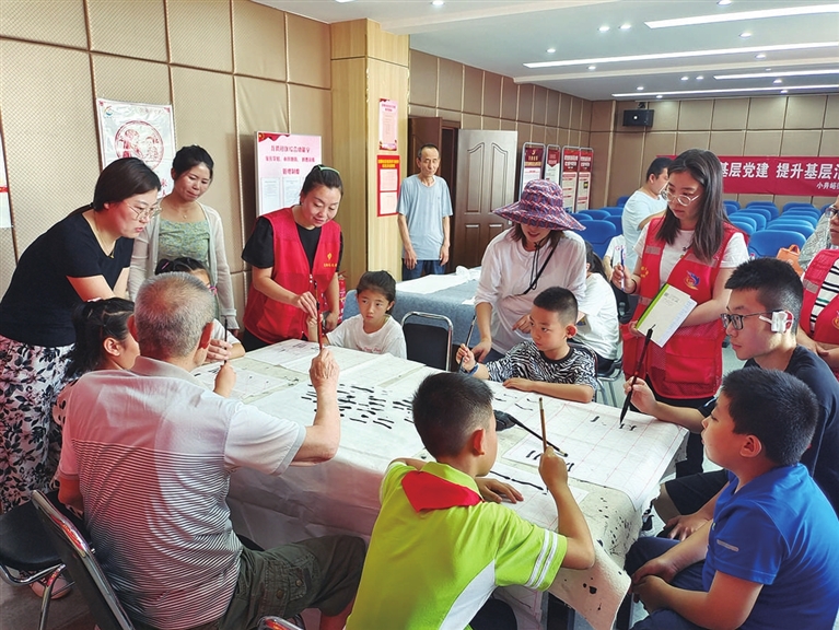 为进一步传承弘扬中华优秀传统文化,丰富暑期生活,7月21日,小井峪街道龙腾社区组织辖区小学生们开展书法学习和交流活动。社区特邀书法爱好者给孩子们讲解基本的握笔和写字姿势,从横竖捺撇开始学写一笔好字。现场,学生们一笔一画认真临摹,反复练习,在撰写中领略书法的魅力。