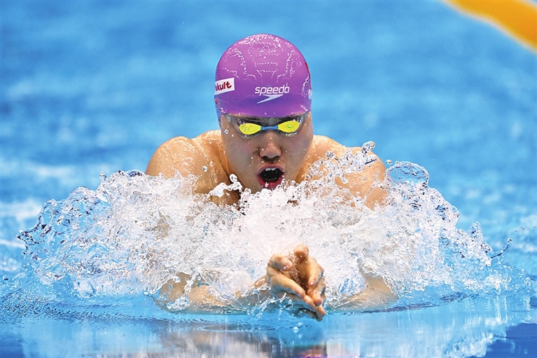 7月23日,中国选手覃海洋在男子100米蛙泳半决赛中,最终他以57秒82的成绩打破亚洲纪录,晋级决赛。当日,2023年世界游泳锦标赛游泳比赛在日本福冈拉开战幕。 新华社 发