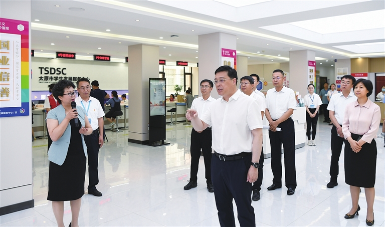 太原市公共就业服务中心承担着就业服务保障、创业载体建设、就业政策落实、信息整理发布等工作职责。韦韬走进人力资源数据驾驶舱,听取高校毕业生就业服务情况汇报,在服务窗口了解毕业生就业登记、社会保险、创业服务等情况,实地察看青年就业服务攻坚行动直播带岗活动,与高校有关负责人深入交流,勉励他们积极搭建就业平台、拓展就业岗位、畅通就业渠道,在就业指导、技能培训、实习见习等环节持续发力,为毕业生提供全方位就业服务。要求中心加强信息化建设,做好毕业生信息衔接和服务接续工作,针对性地开展就业创业服务,争创国家级人力资源服务产业园平台。