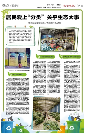 目前爱分类·爱回收太原公司已经形成了前端—机器投递、中端—满箱转运、末端—分拣销售三级运营体系,借助互联网技术,建立生活垃圾可回收物“点—站—场”闭环智能化体系,推进垃圾资源回收产业的发展。