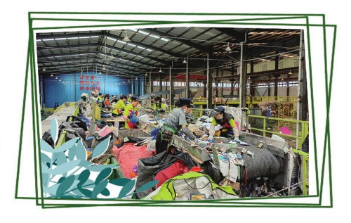 王恒介绍,末端处置中心(可回收物分拣厂房)是2021年8月投产运行的,拥有两个库房,占地面积7000平方米,分设存货区、分拣区、打包区、成品区、充电区、办公及就餐区、散料区等功能区,员工大多是小西铭村村民。分拣中心最大日分拣能力达150吨,使用了最新一代生产线,可实现80多类可回收物的分拣处理。