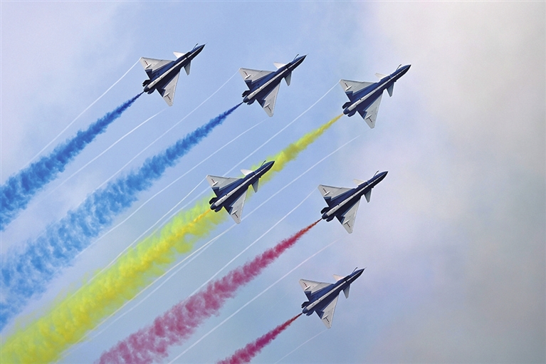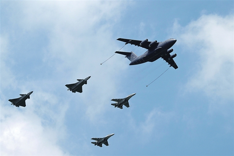 歼-20以四机编队进行机动飞行展示,运油-20首次与歼-20、歼-16进行空中加油通场展示,歼-10S、歼-11BS首次进行异型机模拟空战展示……本次活动集中展示了人民空军加快建设世界一流空军的阶段性成果,亮点纷呈。