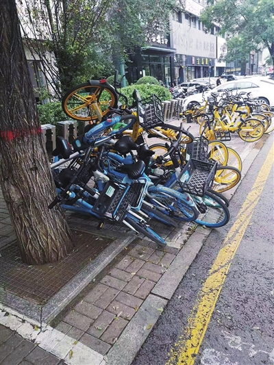 拍摄经过:7月28日,我途经平阳路与平阳路东二巷交叉口往南50米路东便道时,看到数辆共享单车如“叠罗汉”般堆放在行道树旁十分影响市容。干净整洁、文明有序的城市环境需要我们共同创造,在此,希望大家爱护共享单车,爱护我们来之不易的城市环境。