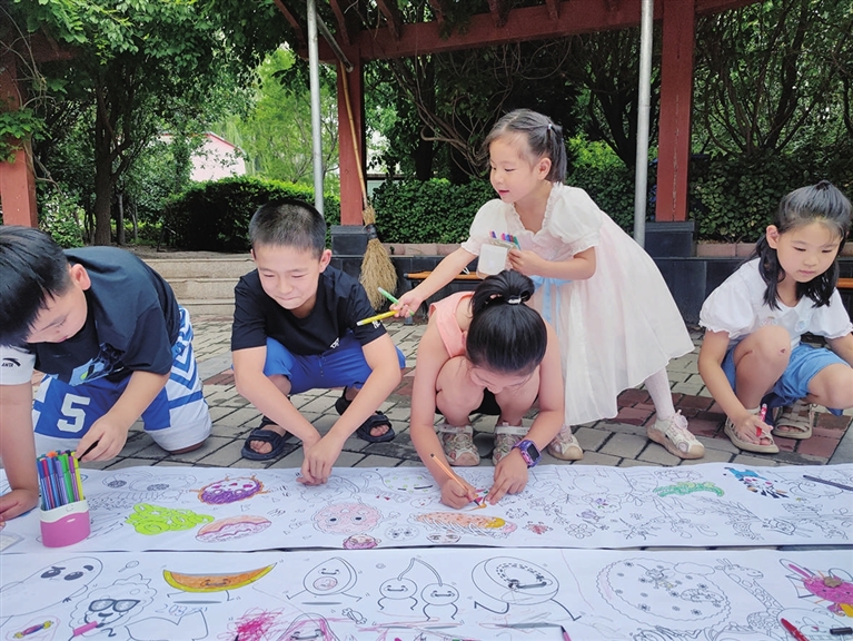 你的梦想是什么?去世界各地探险、当宇航员、成为科学家……8月1日,万柏林区光华街社区举办了一场别具特色的暑假实践活动,一张长约10米的画布铺开,孩子们或蹲或趴,绘出自己的梦想。“举办此次活动,就是希望孩子们在绘画过程中对自己的梦想和未来有所思考,也为假期增添乐趣。”社区工作人员表示。 李涛 郭文娟 摄