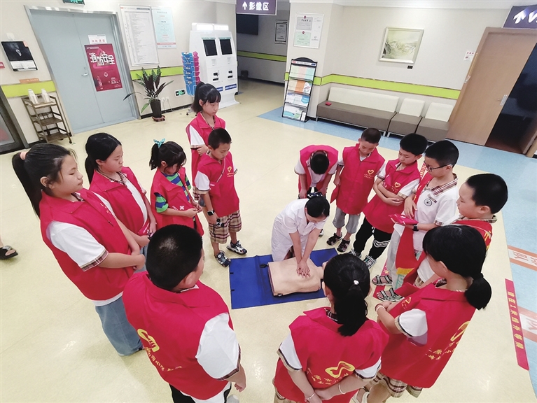 暑假往往是溺水、中暑、烧烫伤和骨折外伤等意外伤害的高发期。出现这些情况时如何急救?8月1日万柏林区消息,公园路社区开办了生活急救小课堂,请专业人士教给辖区中小学生自救、互救的正确方法。学生们纷纷在模拟人上练习心肺复苏术,经过反复操作,基本掌握了急救规范程序、胸外按压、人工通气等要领。 李涛 陈芳 摄