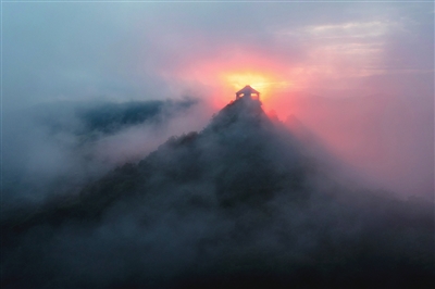 这是7月30日日落时分拍摄的匈牙利绍尔戈陶尔扬附近的绍尔戈城堡(无人机照片)。