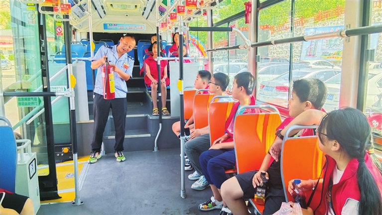 正值暑期,学生户外玩耍时间较多,为进一步提高小学生的交通安全意识和自我保护能力,8月2日,太原公交三公司五车队为职工子女上了一堂暑期交通安全课。课堂上,19路公交车驾驶员王玮给孩子们讲解了不同交通方式应注意的安全问题,通过现场演示、互动问答、抢答有礼等形式,充分调动孩子们的学习兴趣,认识交通安全的重要性,引导大家养成文明出行、安全出行的好习惯。 齐向真 张雪娇 摄