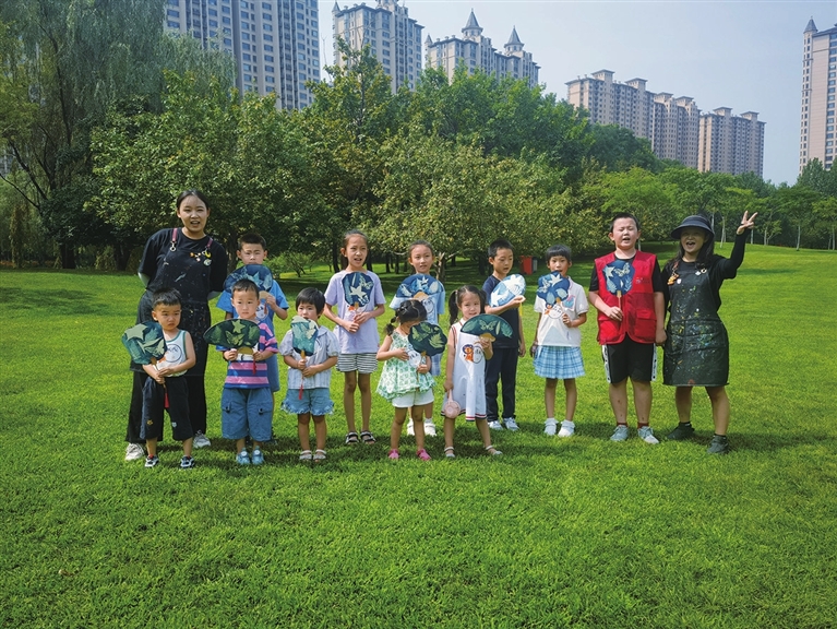 7月27日,为了丰富儿童暑期文化生活,龙城街道星河湾社区在祥云公园举办蓝晒古扇体验活动,将蓝晒工艺融入古典扇面,带领儿童在发挥动手能力、结交亲密伙伴的同时,感受古典工艺魅力。10余名3至10岁的儿童,在社区全科网格员带领下,跟随专业老师向大自然借阳光、借植物,以光影浸润古蓝,以花草印拓扇面,感受光影“魔法”,追溯古典美学。 王丹 武金芝 摄