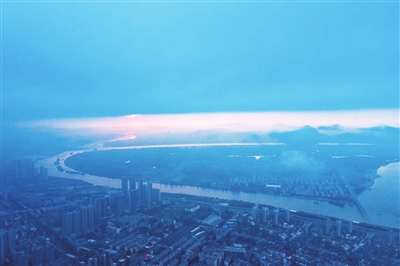 入夏以来,在古城湖北襄阳,清晨多次出现海市蜃楼般的晨雾景观。从空中俯瞰,群山与楼宇在云雾中时隐时现,相映成趣。晨雾宛若薄纱,让人如临仙境。图为楼宇在云雾中时隐时现。