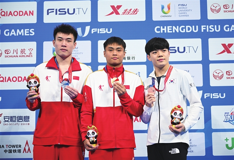 来自山西大学体育学院学生梁朝辉此前和黄博文搭档获得了男子双人3米板的金牌。他说:“这次大运会有收获,也发现了自己的不足,以后要努力更进一步,力争进入国家队,在国际赛场上继续为国争光。”