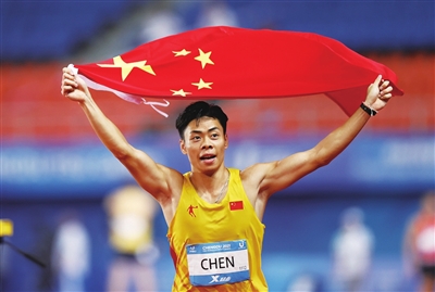 今晚的成都,陈冠锋用几乎相同的方式再次搏得一块铜牌。他在半决赛就跑出10秒16的个人赛季最好成绩,两小时后的决赛上他以10秒17的成绩第三个冲过终点线后,将五星红旗披在了身上。