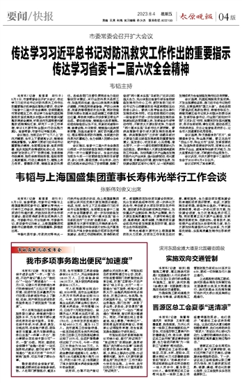 传达学习习近平总书记对防汛救灾工作作出的重要指示 传达学习省委十二届六次全会精神