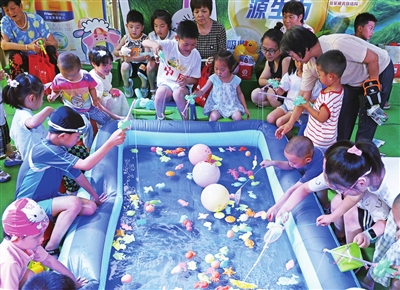 8月6日,小店区一商贸城新开设儿童游乐专区,家长带着孩子消夏购物。 阴钰奇 摄
