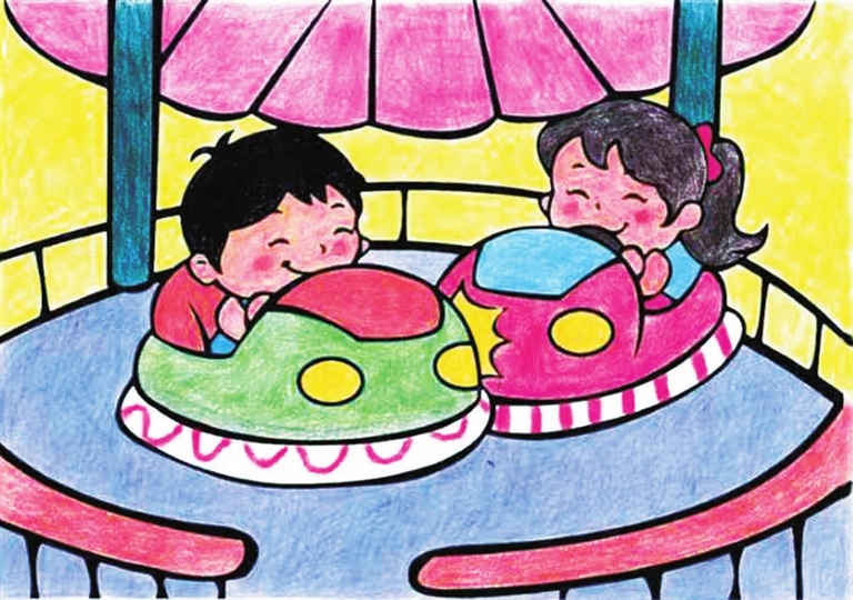 小芒果哪里都好,就是有点儿胆小,看到毛毛虫她都会尖叫着跑开,看到小区里的小狗出来散步她也会怯怯地躲到我的身后。我真希望她胆子能大一点。假期,家人们带我们去游乐场玩碰碰车,她坐在一辆红色的碰碰车里,却一直不敢开动车子,看到有一辆碰碰车向她奔来,她吓得都快要哭了。我急忙开着自己的碰碰车来到她身边,对她说:“不要怕!踩动踏板车子就启动了。碰到别人也不要紧,很安全的。”小芒果半信半疑地启动了车子,没走多远就与我的车“砰”地撞在一起,我哈哈大笑起来,她也放下心来,与我一起开怀大笑。她说:“原来这么好玩啊,谢谢你!”然后一转方向盘向另一个方向驶去了。