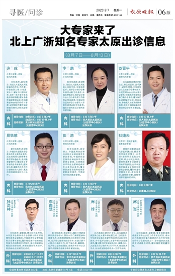 大专家来了 北上广浙知名专家太原出诊信息