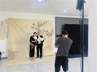 工作人员前一天布置好了拍摄现场。早上8时30分,老人早早来到社区,在社区工作人员和志愿者的帮助下,阿姨们化上淡雅的妆容,盘起典雅的发型,叔叔们换上笔挺的西装,个个神采奕奕,容光焕发。虽然相濡以沫走过数十载,在拍摄过程中,不少老人还是略显羞涩,“阿姨,您再往左边侧一点”“叔叔,您把手搭在阿姨的腰间。”在摄影师的引导下,老人摆出多种造型,在连续不断的快门声中,定格了幸福瞬间。耄耋之年的李奶奶笑着说:“社区组织的这个活动太好了,以前没有机会拍。社区告知我们有这个活动,我们老两口立马就报了名,也算是弥补了我们的遗憾。”