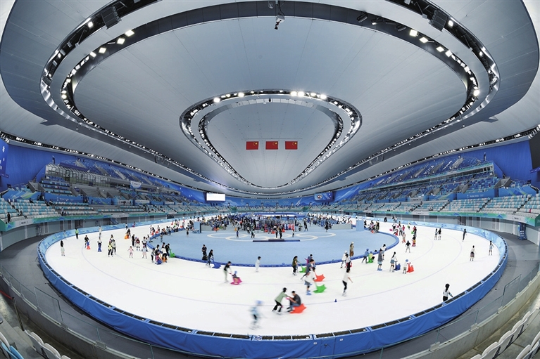 北京,国家速滑馆“冰丝带”,诞生了多项奥运纪录。作为最早对公众开放的北京冬奥场馆之一,这里成为众多滑冰爱好者“打卡”的新地标。