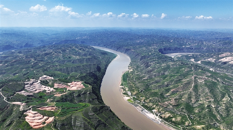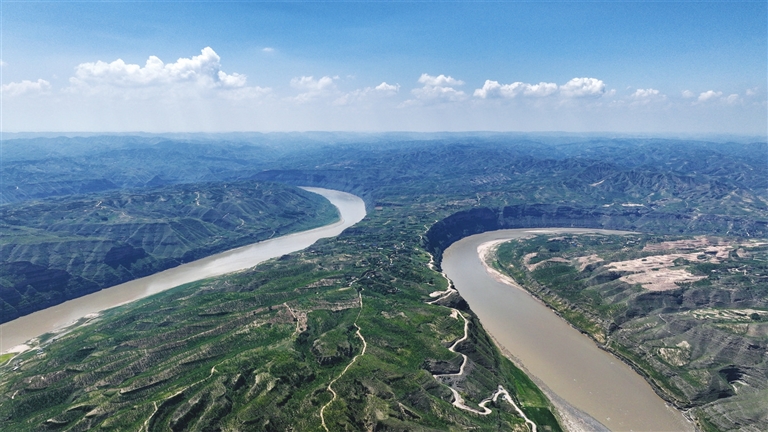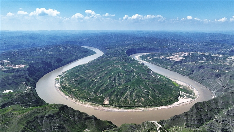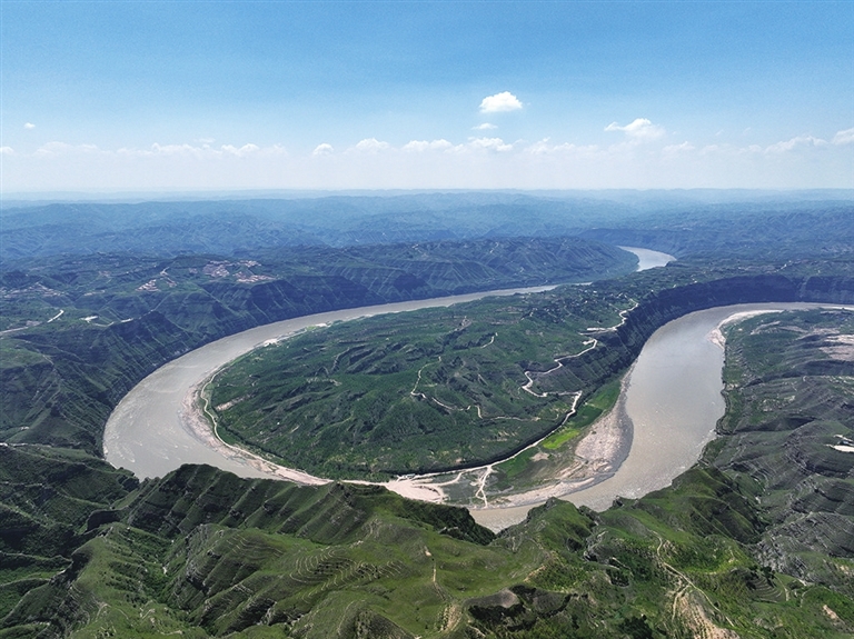 8月3日,在山西省石楼县辛关镇拍摄的黄河奇湾。