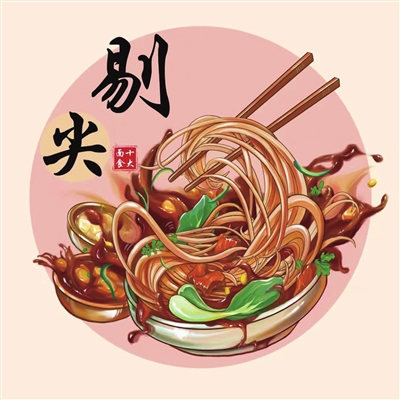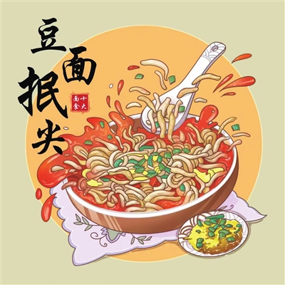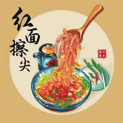 红面擦尖是一种“形如蝌蚪的奇葩面食”。高粱面打底使小蝌蚪呈现出特有的深红,口感筋道。稀稀的黄豆酱带着零星的豆瓣,咸甜恰宜,再加入肉丁、茄子、香菇和鸡蛋,看着就食欲大增。其他配菜也是必不可少的,菠菜白菜黄瓜丝儿,一层一层堆在碗里,不要太美味哦!