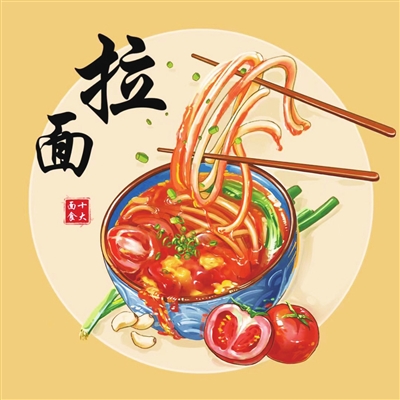 拉面的制作很特殊,其特殊在于可以不借助工具来制作。一碗面粉,一点油盐,一双手就能制作出拉面。面的形状也可粗可细,可圆可扁,可自由发挥。这样朴实的拉面,最适合搭配味道丰厚的食物,小炒肉、西红柿鸡蛋、小鸡炖蘑菇、炒菜……这样一拌,吃起来可真带劲!