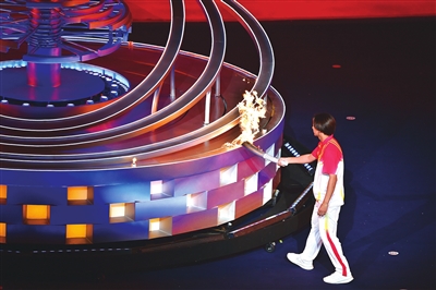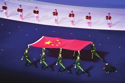 在全场观众的注视下,北京冬奥会冠军苏翊鸣带着大家共同的希望和梦想,点燃主火炬。刹那间,缤纷的礼花和着万众的热情缀满塞外的夜空。