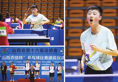 8月11日,山西省第十六届运动会乒乓球比赛中,太原队刘冠成表现出色,夺得男单甲组冠军。在本次比赛中,刘冠成还获得甲组男子团体、甲组混合双打冠军和甲组男子双打亚军的好成绩。 米国伟 摄