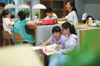 暑假期间,山西省图书馆以舒适的环境、丰富的优质图书吸引了不少学生学习“充电”。8月11日,小朋友们在省图学习、阅读。 张昊宇 摄