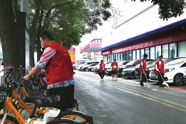 8月10日,营盘街道平阳路一社区组织社区青年团员及辖区青少年开展志愿服务活动。清扫街道、摆放共享单车、清除小广告,小志愿者们用实际行动助力创城,美化城市环境。