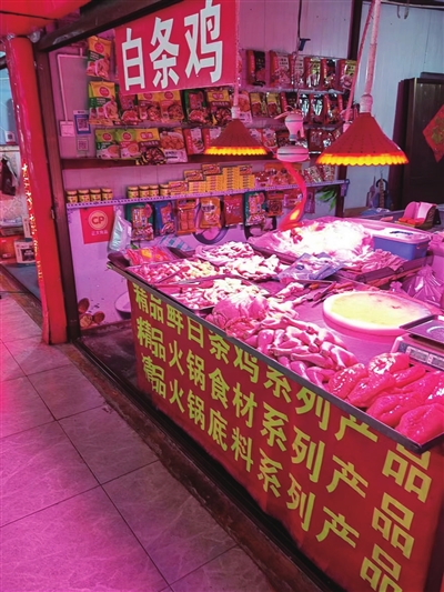 “我们用这种红灯已经有好多年了。”在一家连锁肉铺内,店主告诉记者,“这种‘生鲜灯’兴起也没几年。原先,我们都是用普通白炽灯照明,后来发现有的店开始用这种灯,效果还不错,慢慢就都用上了。”
