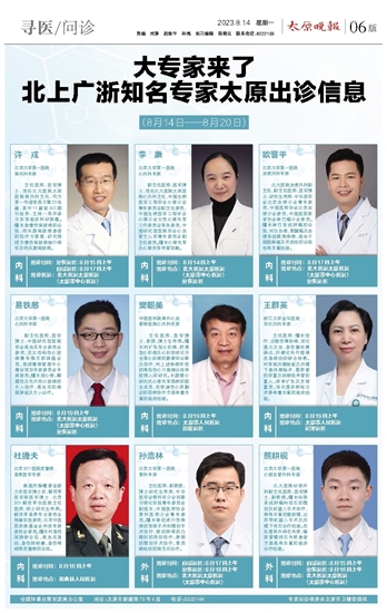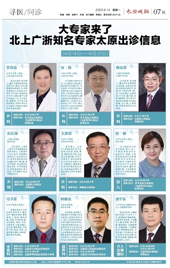 大专家来了 北上广浙知名专家太原出诊信息
