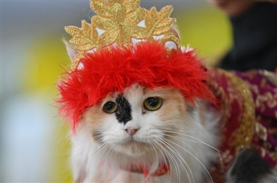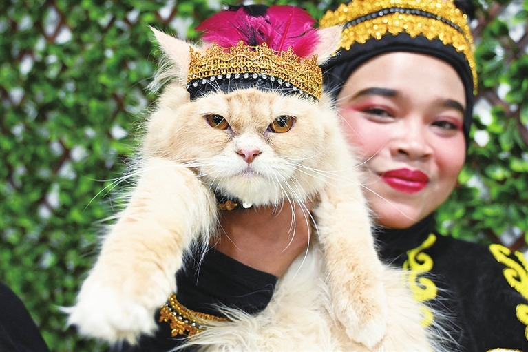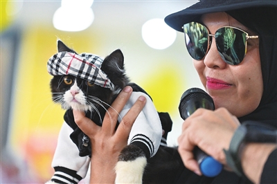 这是8月12日在印度尼西亚一个商场拍摄的参加猫咪时装周的猫。
