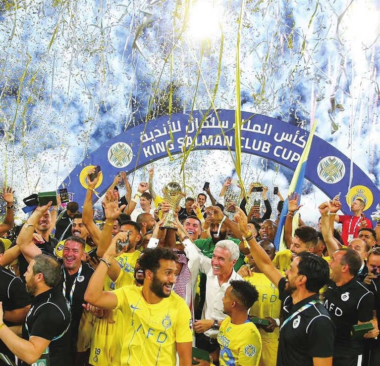 此役,C罗连续5场比赛进球,7次射门、4次射正、打入2球,虽然未能包揽赛事的金靴与金球,但他还是非常开心,他在社交媒体上晒出了自己扛着奖杯傻笑的照片,拿下来到沙特之后的第一个冠军后,C罗表达了自己的喜悦之情:“非常自豪第一次帮助球队赢得这个重要的奖杯!感谢俱乐部参与这项伟大成就的每一个人,感谢一直陪在我身边的家人和朋友!我的粉丝的支持!”值得一提的是,除了冠军,C罗最近也是双喜临门,他的社交媒体粉丝数已突破6亿。